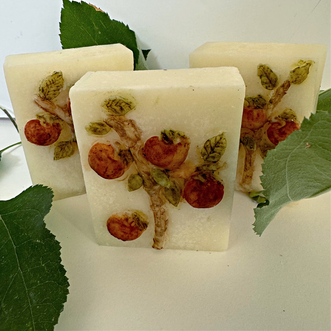 The soap and candle are in a two piece kraft box with dried botanicals and apples. The soap and botanical candle may differ slightly to the photos as each product is carefully handcrafted.